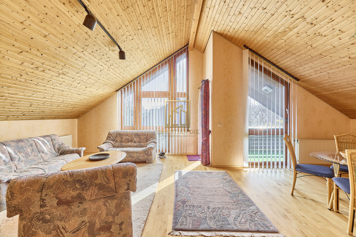 – Decke im Wohnbereich (OG), die bis zum Dachfirst offen ist