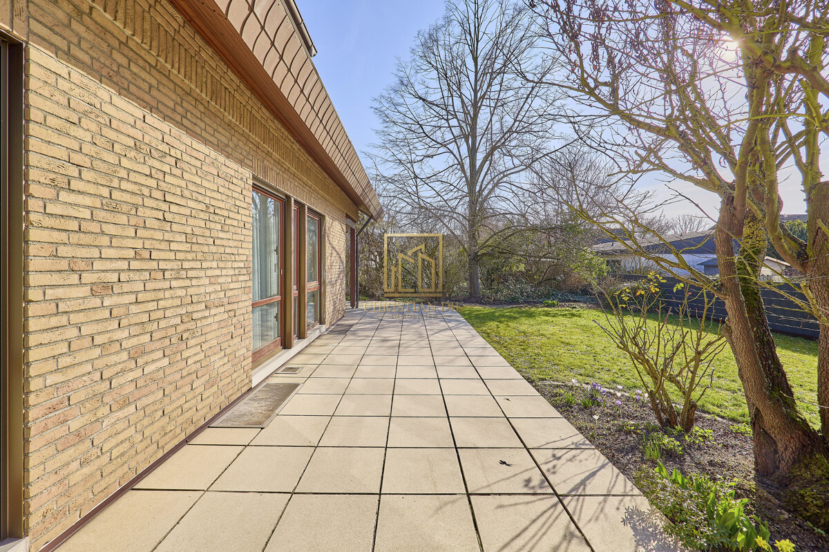 Auf Ihre nach Süden und Westen ausgerichtete, teilweise überdachte Terrasse, gelangen Sie von Ihrem Wohnzimmer und vom Kinderzimmer/Büro aus. Der Garten erstreckt sich in L-Form um das Haus und bietet ruhige Sonnen- und Schattenplätze, auf denen Sie Ihre Freizeit in entspannter Atmosphäre genießen können.