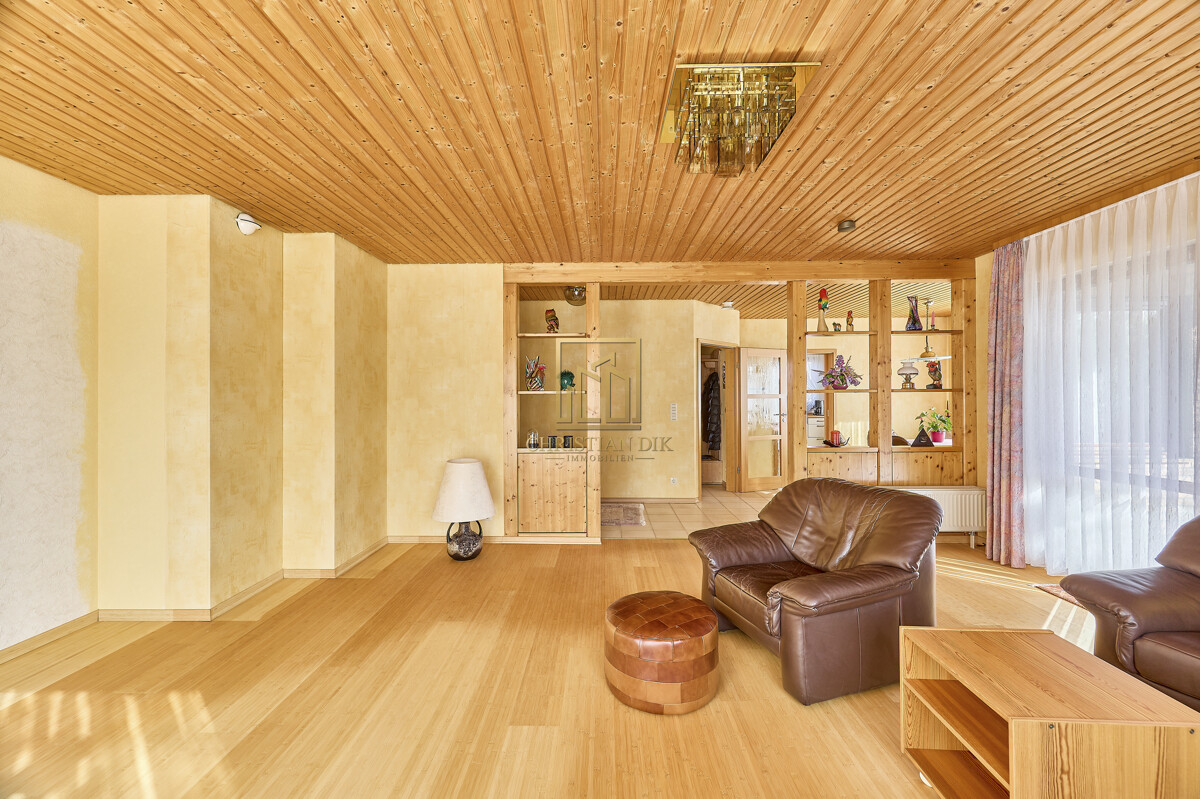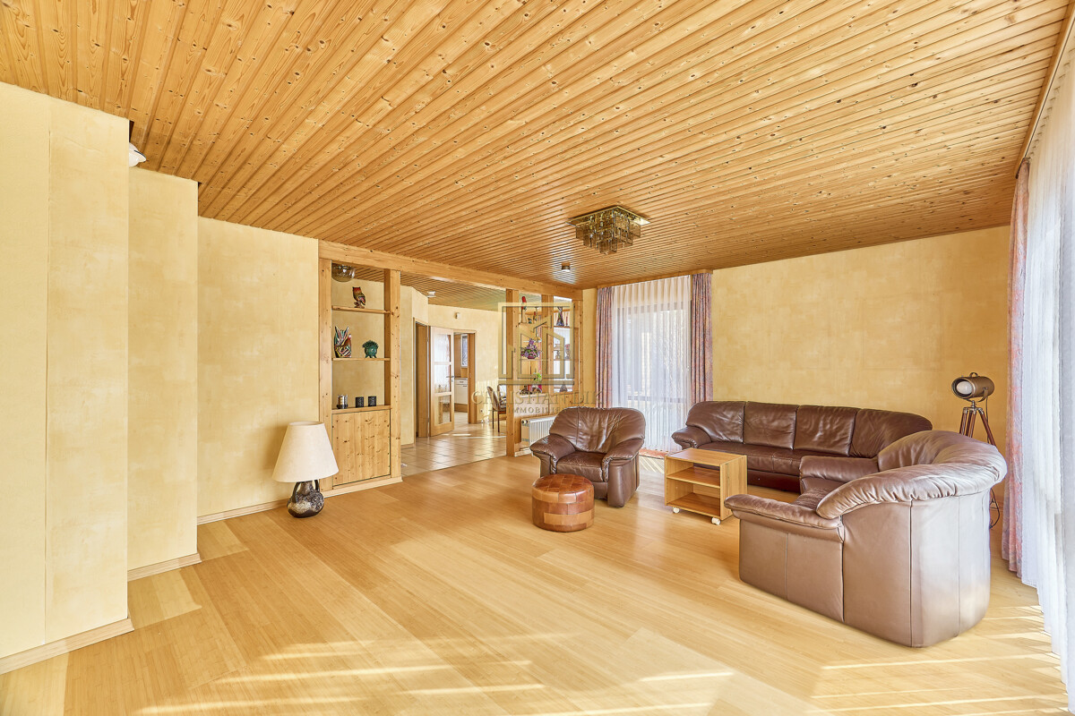 – Großes, einladendes und helles Wohnzimmer mit großer Terrassenfensterfront
